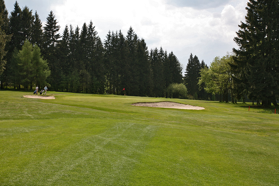 Dogleg doleva, na levé straně ji lemuje les, který do vzdálenosti zhruba dvě stě metrů tvoří i hranice hřiště. Green není z odpaliště vidět. Není to nejtěžší jamka, ale opět velmi technická.